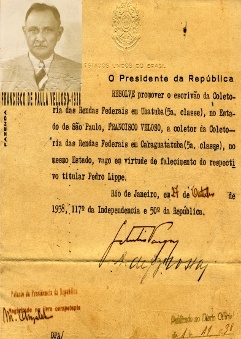 Na Coletoria Estadual o escrivão era o Cel. Ernesto de Oliveira, pai do Seu Filhinho, e na Coletoria Federal o escrivão era o Sr. Francisco de Paula Velloso, pai do Seu Trajano, nomeado pelo Chefe do Governo Provisório Getulio Vargas em 26 de julho de 1933, tomando posse em 27 de outubro do mesmo ano. E cinco anos depois, exatamente em 27 de outubro de 1939, foi promovido a coletor da Coletoria das Rendas Federais de Caraguatatuba, em virtude do falecimento do respectivo titular Pedro Lippe. Em 1938 Getúlio já assinava como O Presidente da República dos Estados Unidos do Brasil, 117º da Independência e 50º da República.